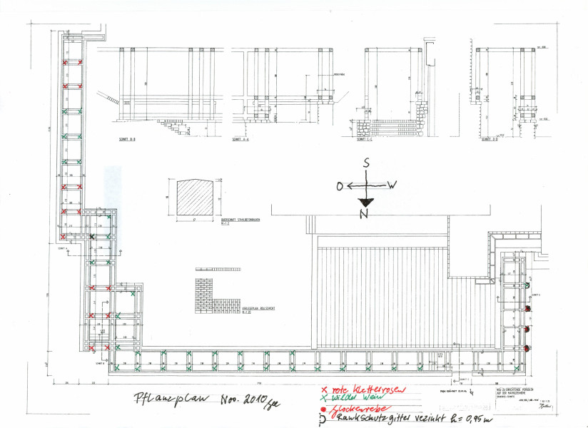 Bepflanzung der Betonpergolen