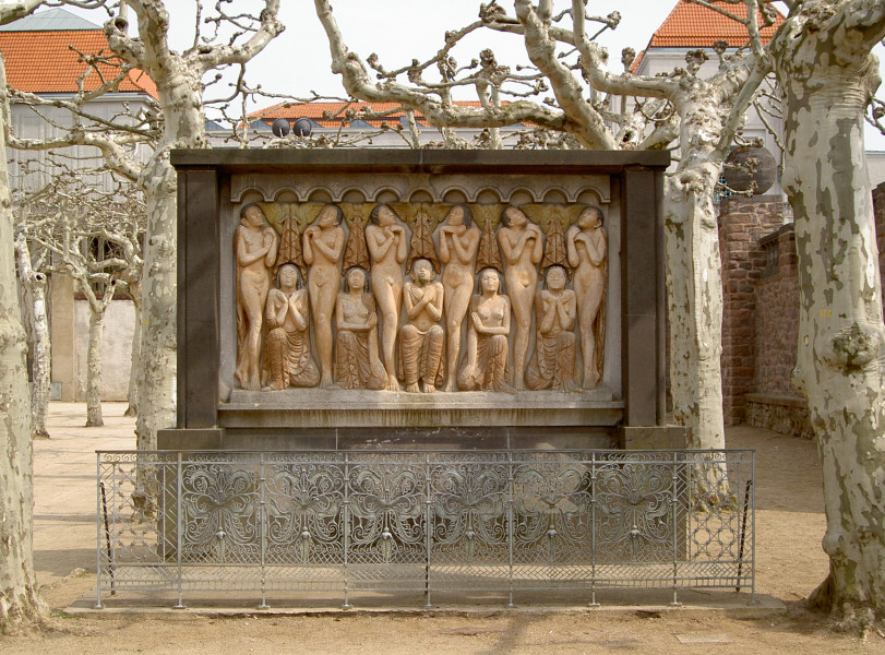 Kürzlich wurden auch die golden schimmernden Ziergitter an den beiden letzten sanierten Rankgitter aufgestellt und die Pflanzen (Bodendecker vor den Reliefwänden und Efeu an den Rankgittern) gepflanzt. Damit ist die Sanierung aller Hoetger-Objekte innerhalb des Platanenhains abgeschlossen. Hier können Sie einen Eindruck an einem Sommerabend gewinnen. (18.06.2019)